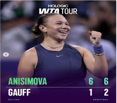 阿尼西莫娃横扫高芙晋级决赛,首获年终总决赛资格