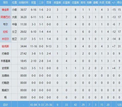 热火全队数据如下: