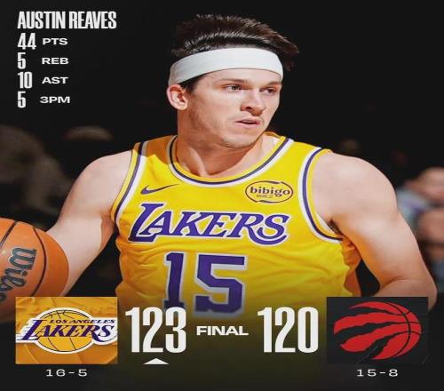 北京时间12月5日,依靠着八村塁的三分绝杀,湖人123-120险胜猛龙。湖人后卫里夫斯21投13中,三分11中5,罚球15中13,得到44分5篮板10助攻,正负值+6并列全场最高。本赛季至今,里夫斯场均轰下28.9分,高居联盟第六。